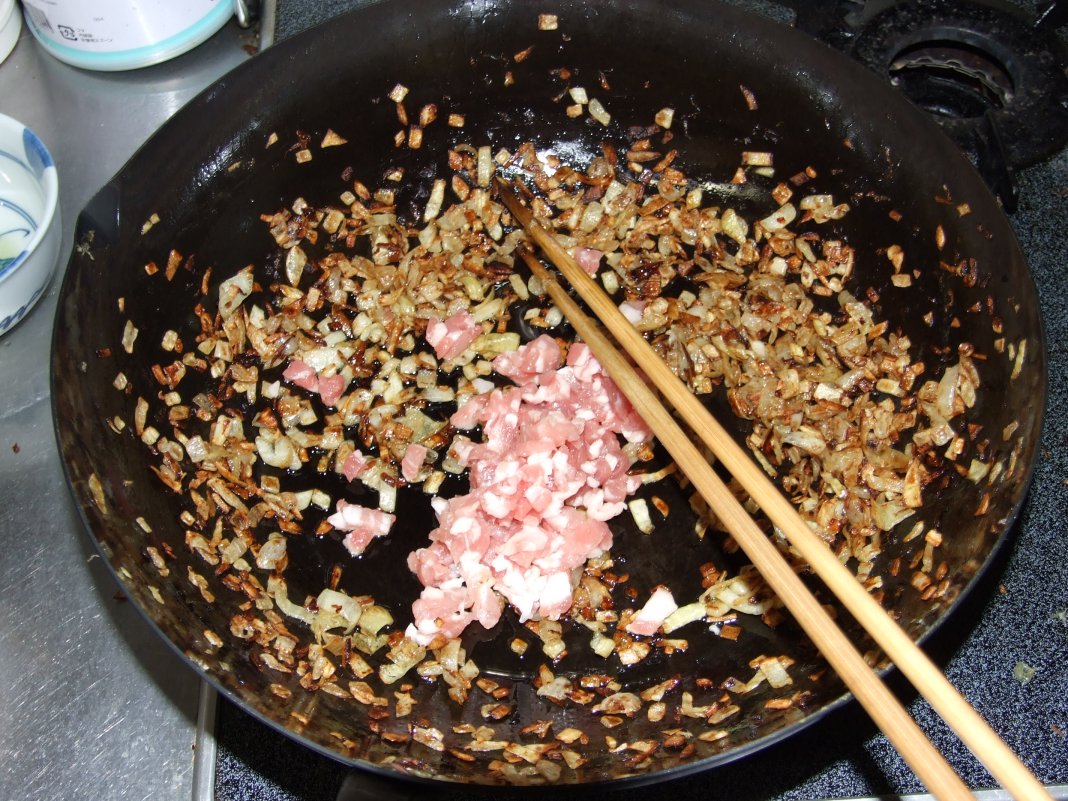みじん切りにんにくもこの段階で入れてしまってもいいかも知れませんね。