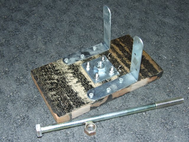 モーター土台についているのは階段とかで手すりを通すアレです。ホームセンターでこれとロングボルトを見た瞬間に、全体像が頭の中に浮かびました。