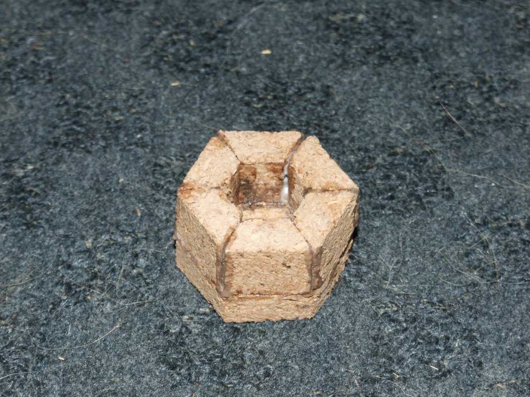 コルクを削り出して木工用ボンドで貼り合わせ。なかなかピッタリの角度にならないので、ボンドで誤魔化してます。まだちょっと生乾きです。