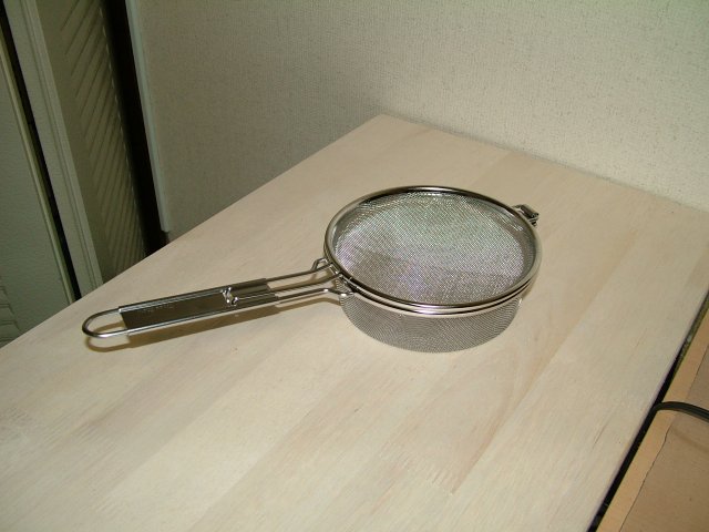 だとしたら、最初から屋外でやるものと割り切って、焙煎用の手網を使ったほうが良いのではないかと思い、ごく普通の銀杏煎り用の16cmの網を1500円ほどで買いました。