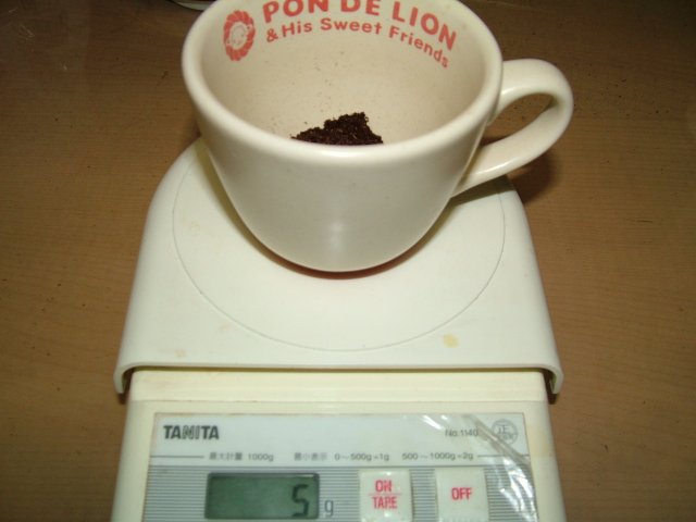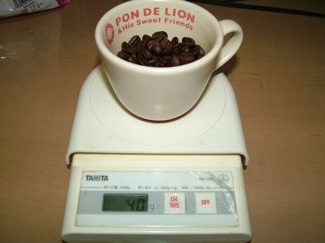 まず、珈琲豆の状態で5杯分、40グラムきっかり準備して中挽きで挽きました。