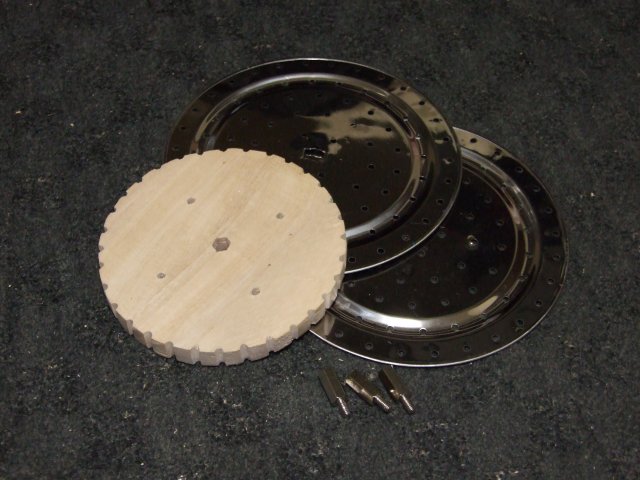 金属の円盤も100均で買ったステンレス落し蓋です。まんなかの取っ手部分が邪魔なのでとっぱらいました。