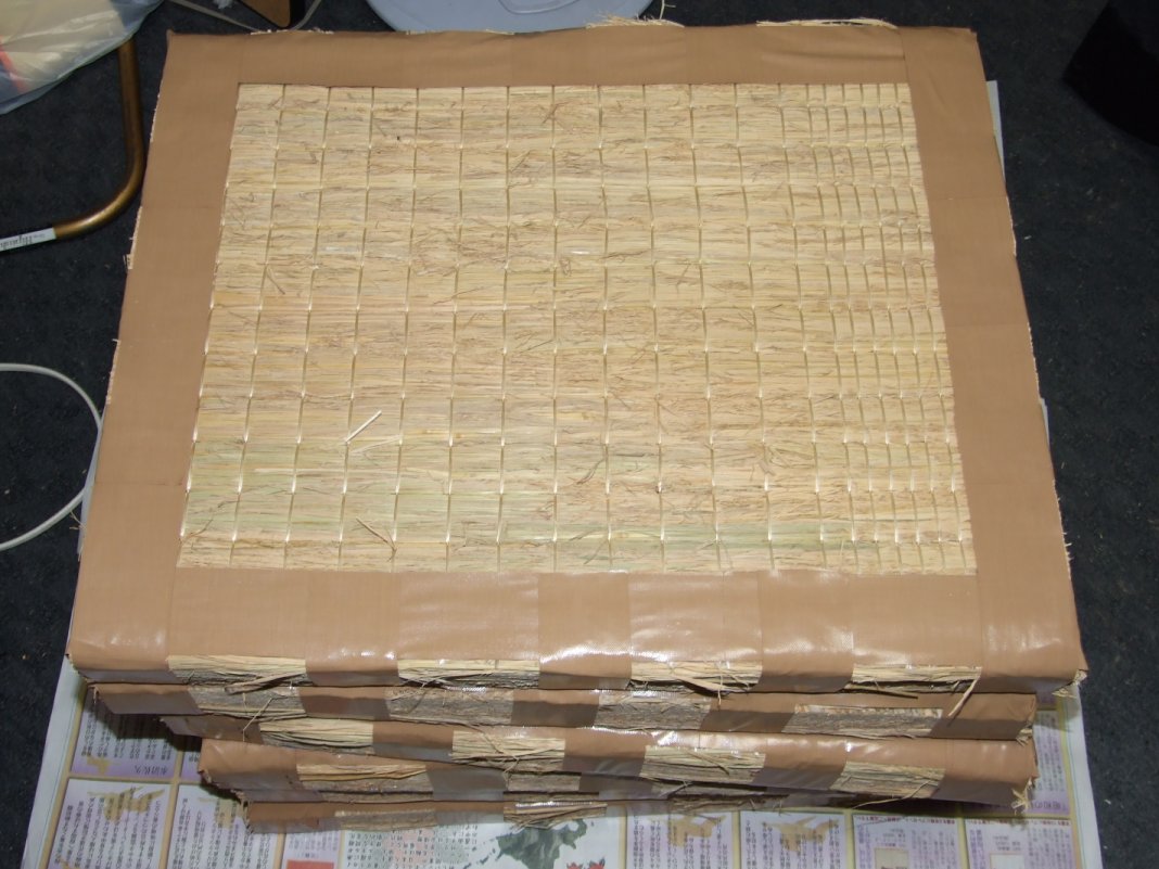 近所の畳屋さんで古畳をもらったついでに60x45cmにカットして頂きました。全部で6枚になりました。