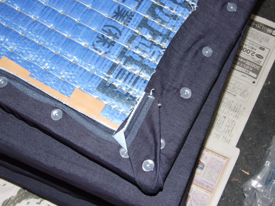 まずは、端っこの処理。ほうっておくと、どんどんほぐれてバラバラになってしまうので、4辺を布粘着でがっちり固定します。