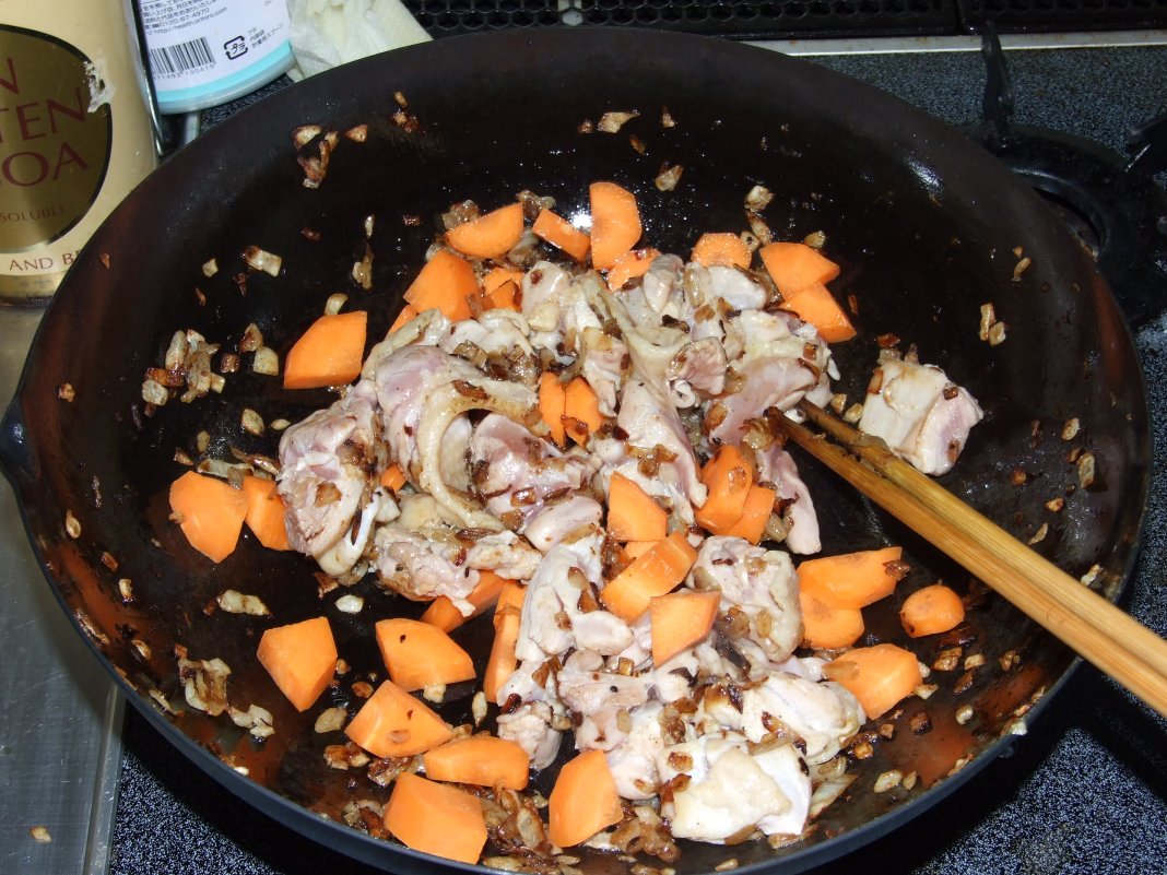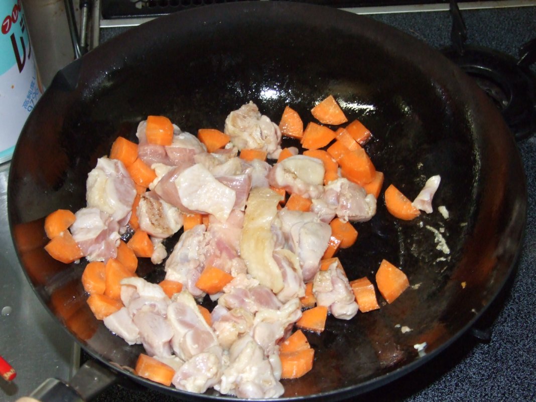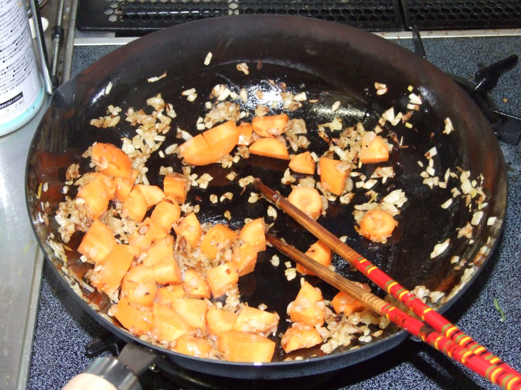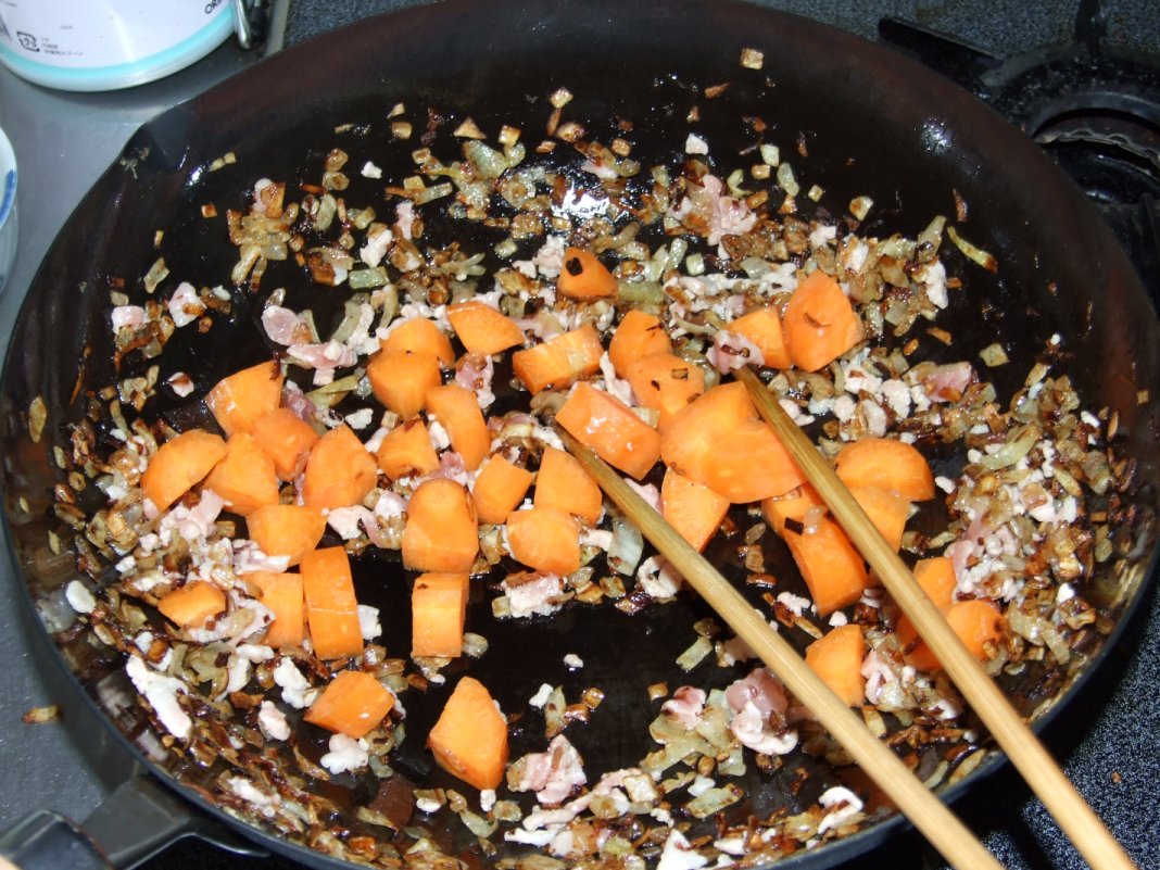 人参は柔らかくするというよりも、油をしっかり絡めて熱くする程度で構いません。