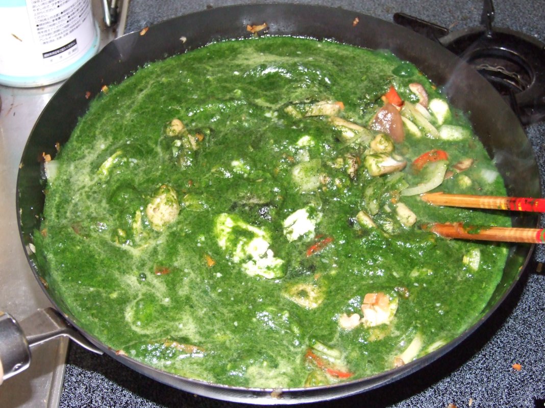 前回はもう少し細かく段階を追っていたのですが、今回はこの時点でギー(インド発酵バター)とマンゴチャツネ、すりおろし生姜などを入れてしまいました。