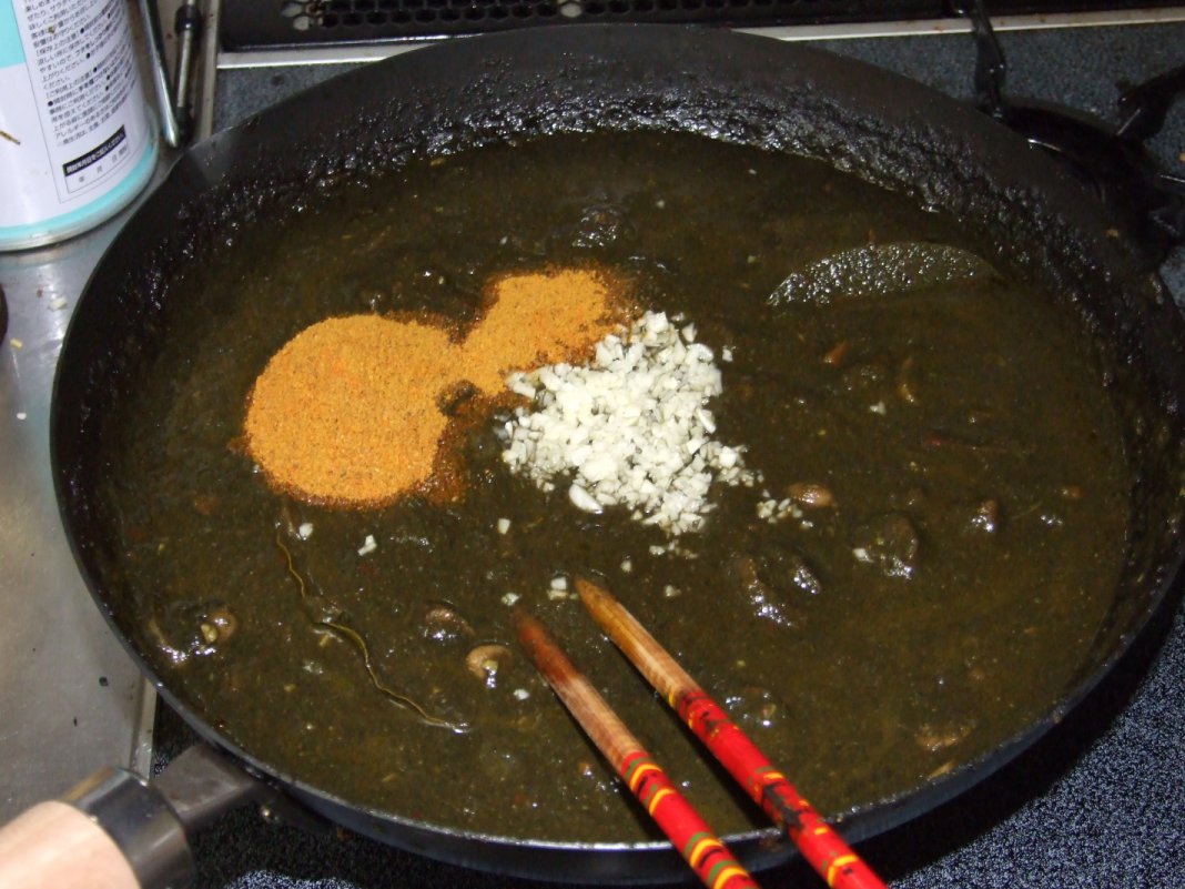 仕上げスパイスとラードを入れて、塩で味を整えます。